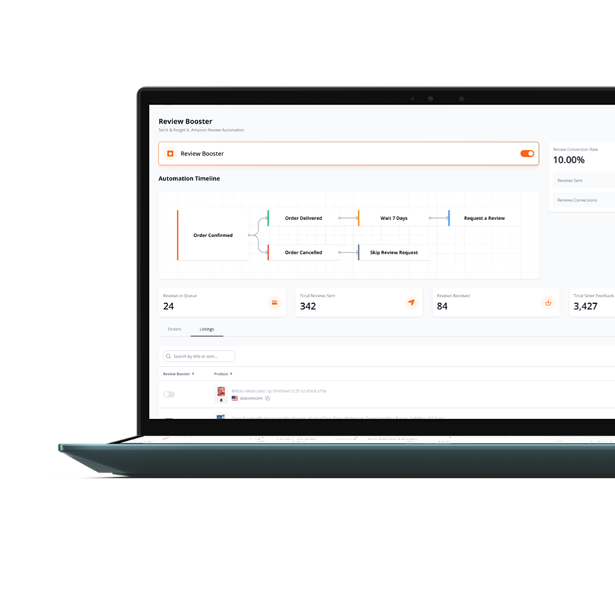 Skip the hassle of manually requesting reviews on Seller Central and focus on growing your business. With Review Automation, all eligible orders receive automatic review requests, saving you time and effort.